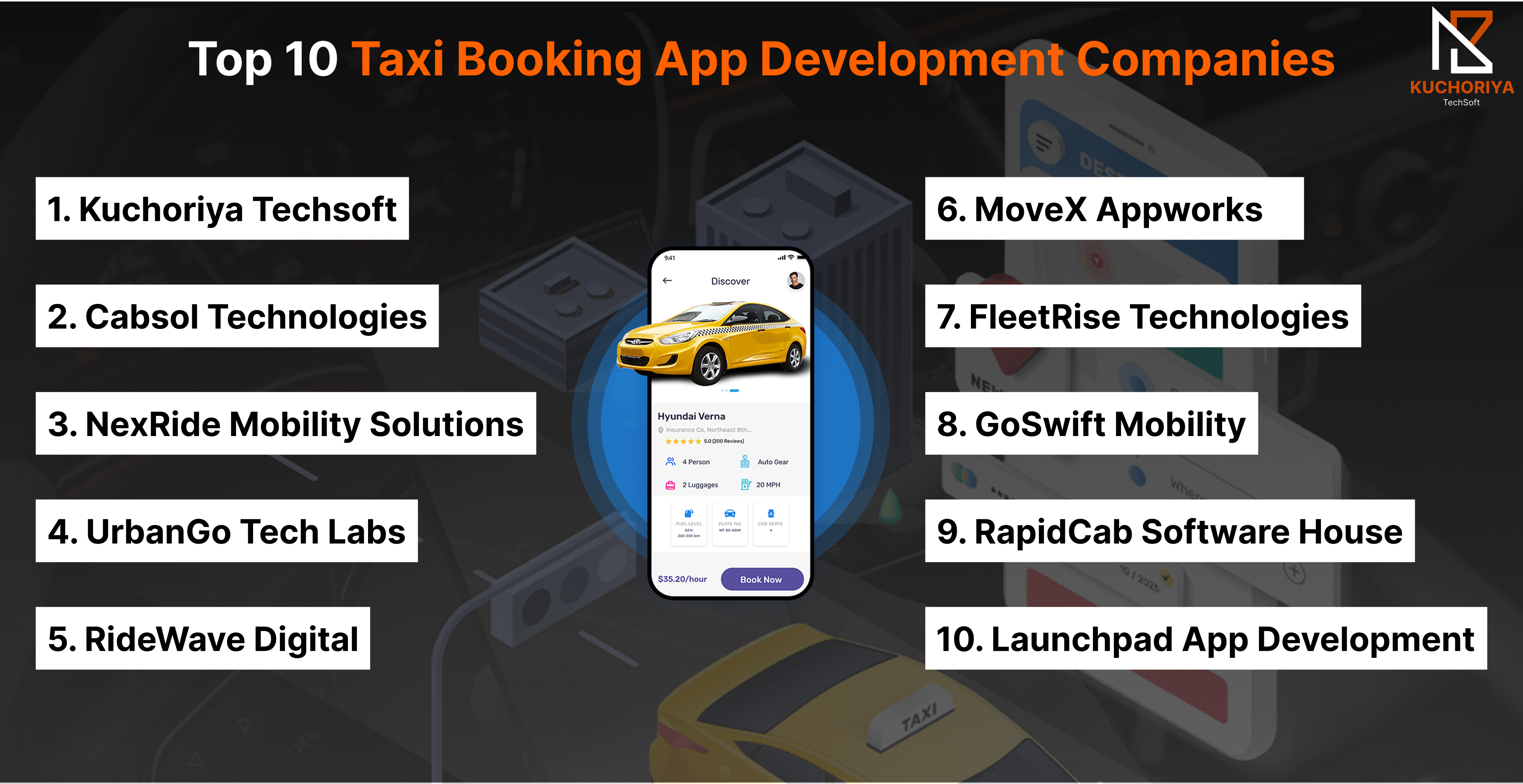 Kuchoriya Techsoft is a globally trusted name in custom taxi booking app development, offering scalable, enterprise-grade ride-hailing app solutions for startups and multi-city operators. Their apps include real-time GPS tracking, in-app payments, driver & rider dashboards, and fleet management software—all built with a future-ready architecture. Known for delivering secure and feature-rich on-demand taxi apps, they serve markets across New York, Toronto, London, Dubai, and Sydney.